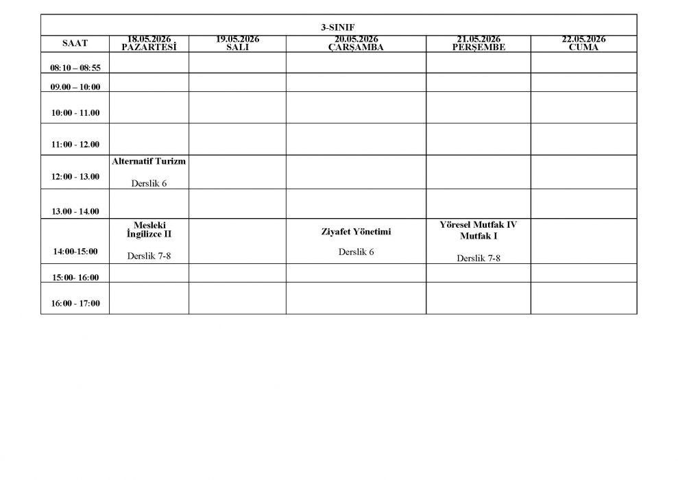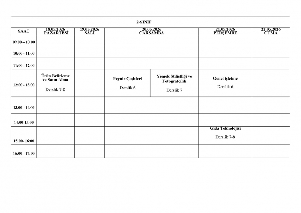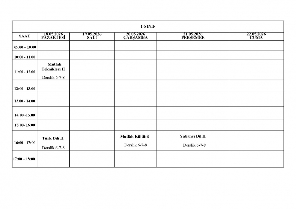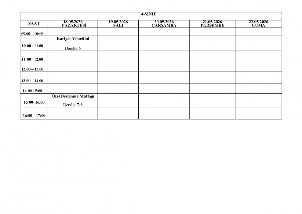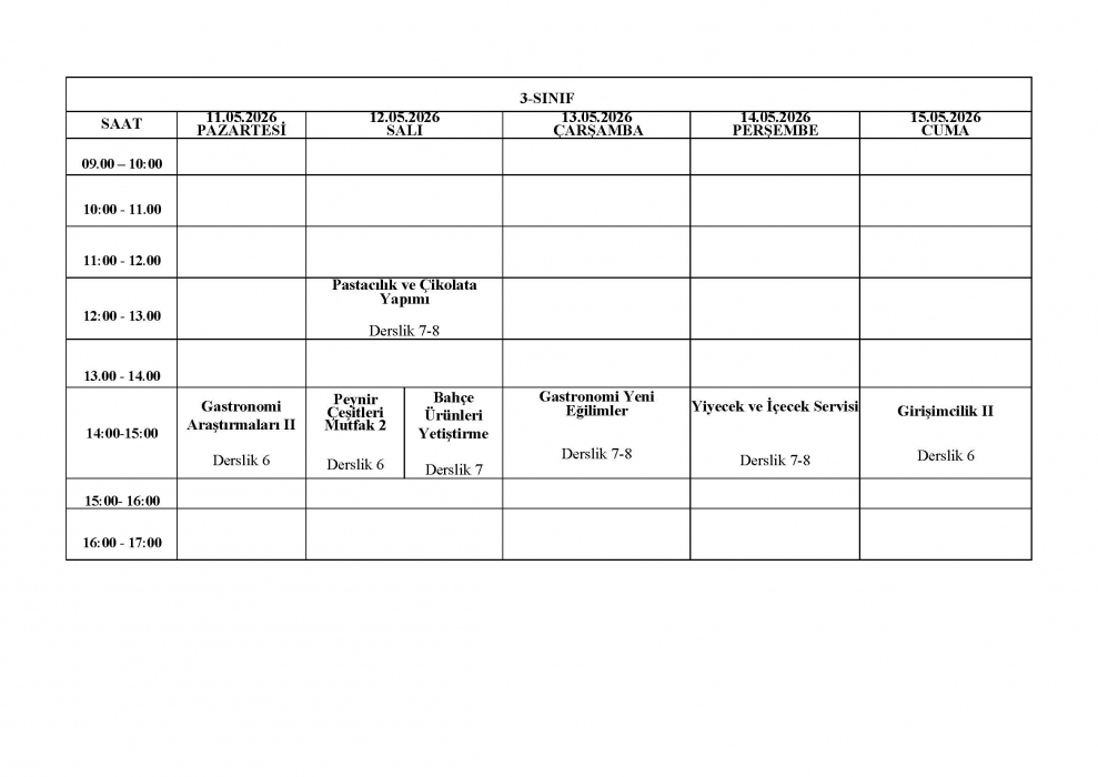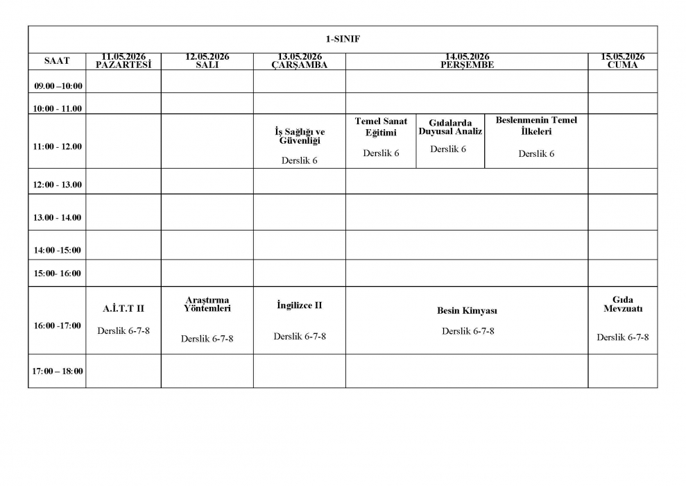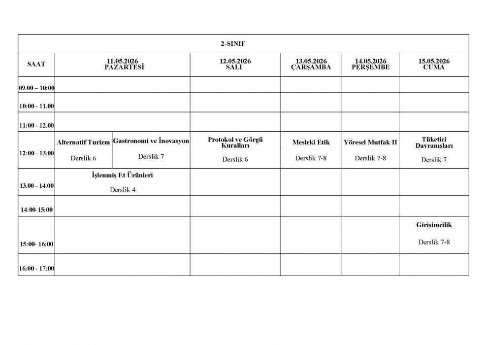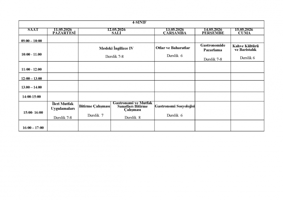 2025-2026 Eğitim-Öğretim Yılı Bahar Dönemi GMS Bölümü Final Sınav Programı