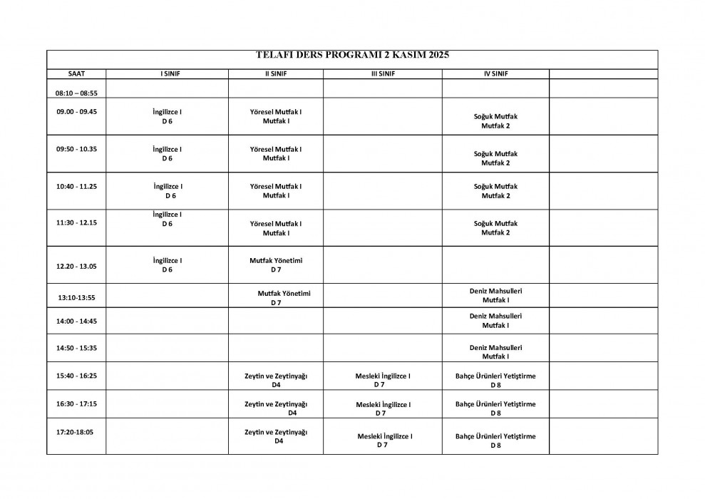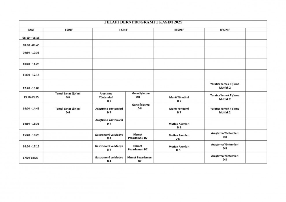 2025-2026 Akademik Yılı Güz Dönemi Bütünleme Sınav Takvimi