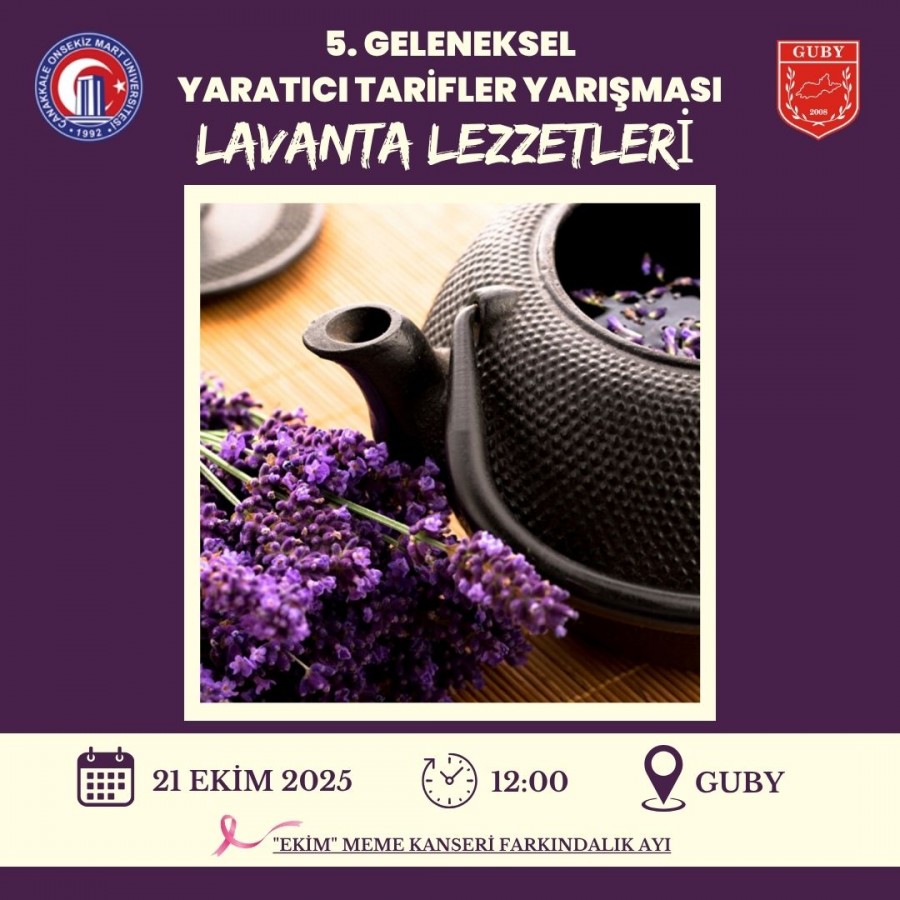 Gökçeada Uygulamalı Bilimler Yüksekokulu Gastronomi ve Mutfak Sanatları Bölümü tarafından düzenlenen “5. Geleneksel Yaratıcı Tarifler Yarışması”, 21 Ekim 2025 Salı günü saat 12:00’de gerçekleştirilecektir.