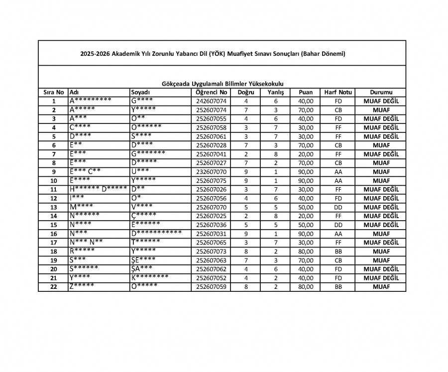 2025 - 2026 AKADEMİK YILI ZORUNLU YABANCI DİL (YÖK) MUAFİYET SINAV SONUÇLARI (BAHAR DÖNEMİ) - .pdf
