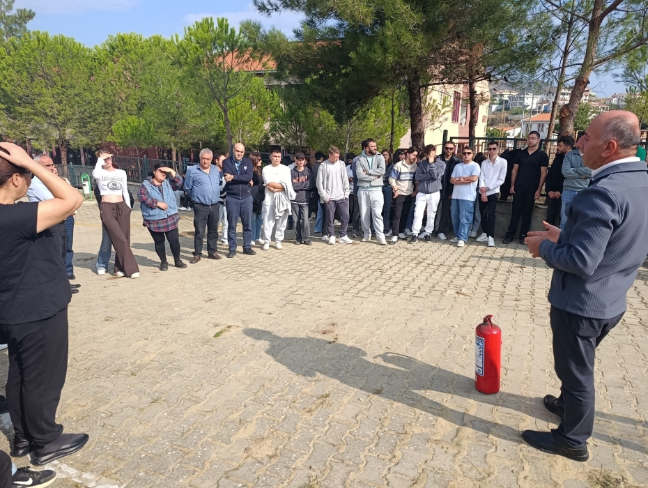 Çanakkale Onsekiz Mart Üniversitesi Gökçeada Yerleşkesi’nde, Gökçeada Belediyesi İtfaiye Amirliği iş birliğiyle yangın güvenliği eğitimi ve tatbikatı düzenlendi.
