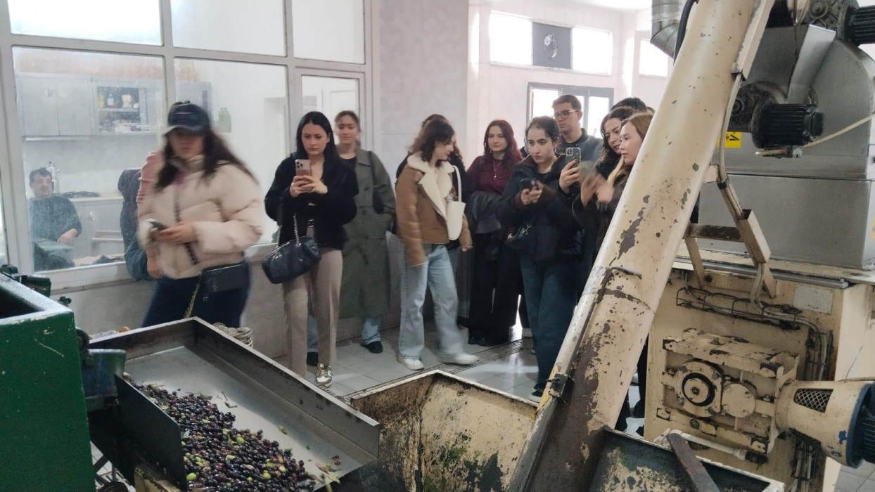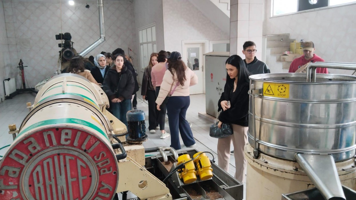 Dersin yürütücüsü Öğr. Gör. Yağmur Su Kocabaş Güneşhan rehberliğinde gerçekleştirilen teknik gezide öğrenciler, zeytinin hasat sonrası işlenme süreçlerini, üretim hattını ve modern zeytinyağı teknolojilerini yerinde inceleme fırsatı buldu.