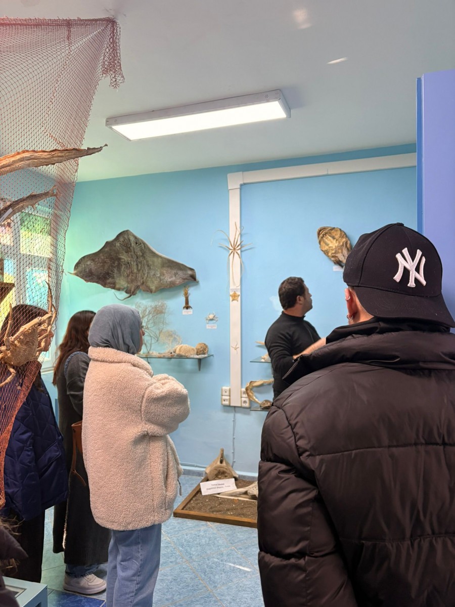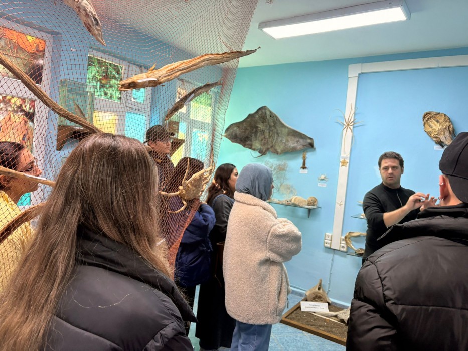 Ziyaret kapsamında, Birim Yöneticisi Sedat Ozan Güreşen tarafından Gökçeada çevresinde yaşayan deniz canlılarının tür çeşitliliği, ekolojik özellikleri ve bölgedeki su altı yaşamının genel yapısı müzedeki örnekler üzerinden kapsamlı bir şekilde öğrencilere aktarıldı. Ardından gastronomik değeri bulunan deniz mahsulleri üzerine bilgilendirme yapılarak, bu ürünlerin avlanma koşulları, mevsimsellik unsurları ve mutfak kullanım alanları üzerine detaylı açıklamalar sunuldu.