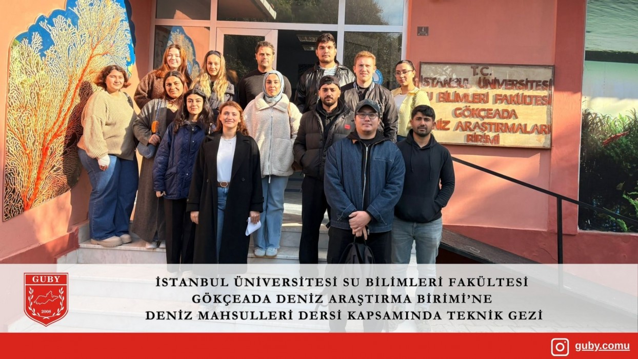 Gökçeada Uygulamalı Bilimler Yüksekokulu Gastronomi ve Mutfak Sanatları Bölümü öğrencileri, 3 Aralık Çarşamba günü yürütücülüğünü Öğr. Gör. Ayşe Kuru Alaylı’nın yaptığı Deniz Mahsulleri dersi kapsamında, dış paydaşlarımızdan İstanbul Üniversitesi Su Bilimleri Fakültesi Gökçeada Deniz Araştırma Birimi’nin Kaleköy’deki yerleşkesine teknik gezi düzenledi.