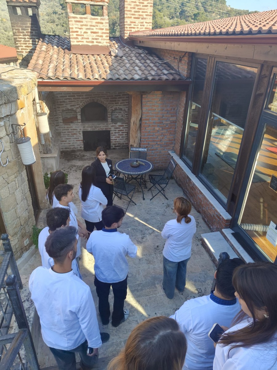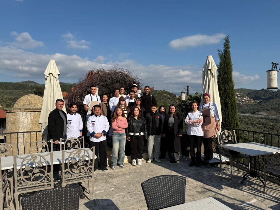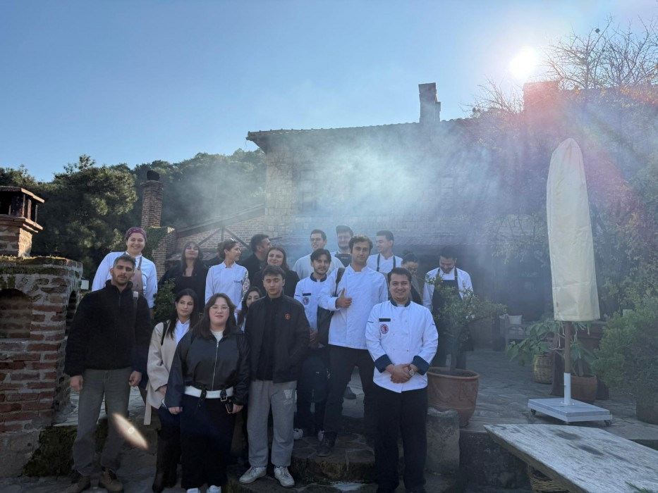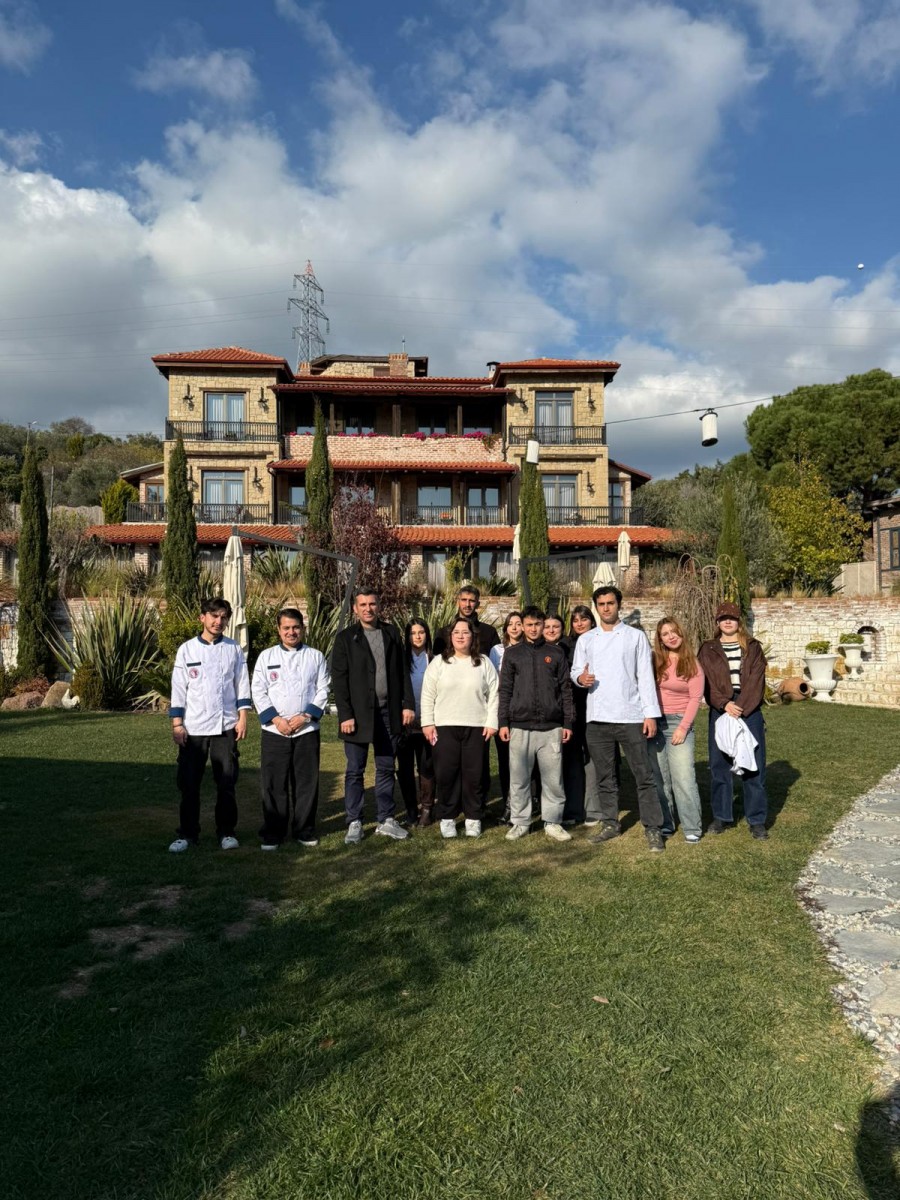 Gezi kapsamında ziyaret edilen bir diğer dış paydaş olan Nadas Kazdağları’nda ise işletme yönetimi ve mutfak ekibi tarafından tesis tanıtımı gerçekleştirilerek öğrencilerin soruları yanıtlandı. Sürdürülebilirlik anlayışı, mutfak uygulamaları ve gerçekleştirilen etkinlikler hakkında paylaşımlarda bulunulurken, sunulan ikramlarla öğrenciler üretim anlayışını yakından gözlemleme imkânı buldu. Bu ziyaretin, öğrencilere mesleki açıdan yeni fikirler kazandırdığı, motivasyonlarını artırdığı ve sektöre dair önemli bir bakış açısı sunduğu ifade edildi.