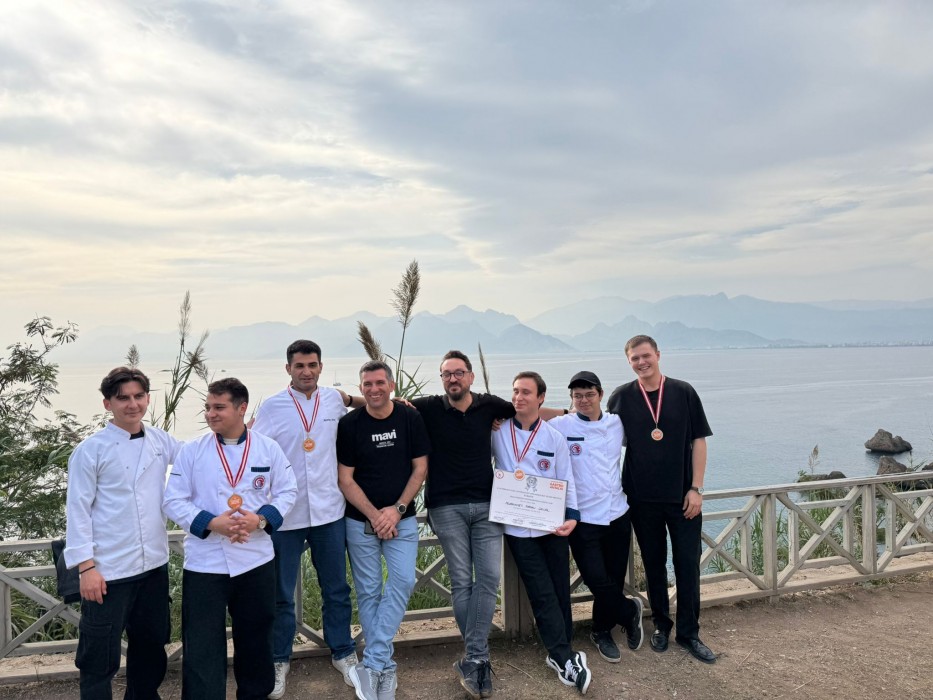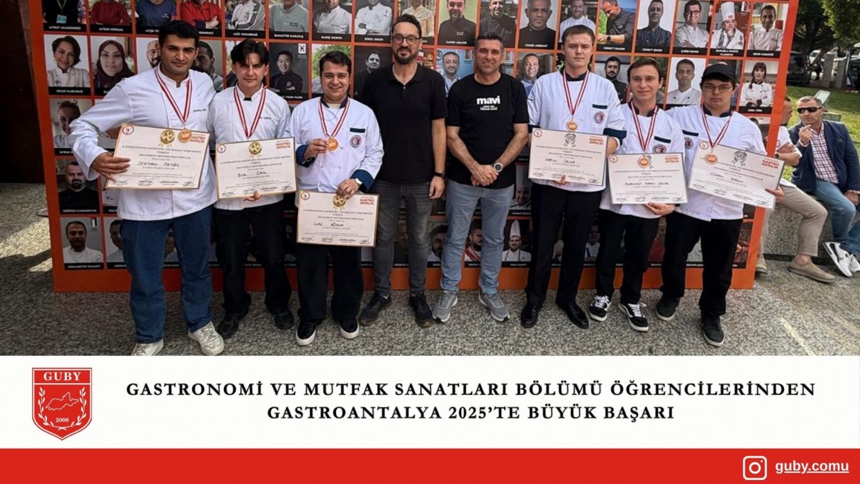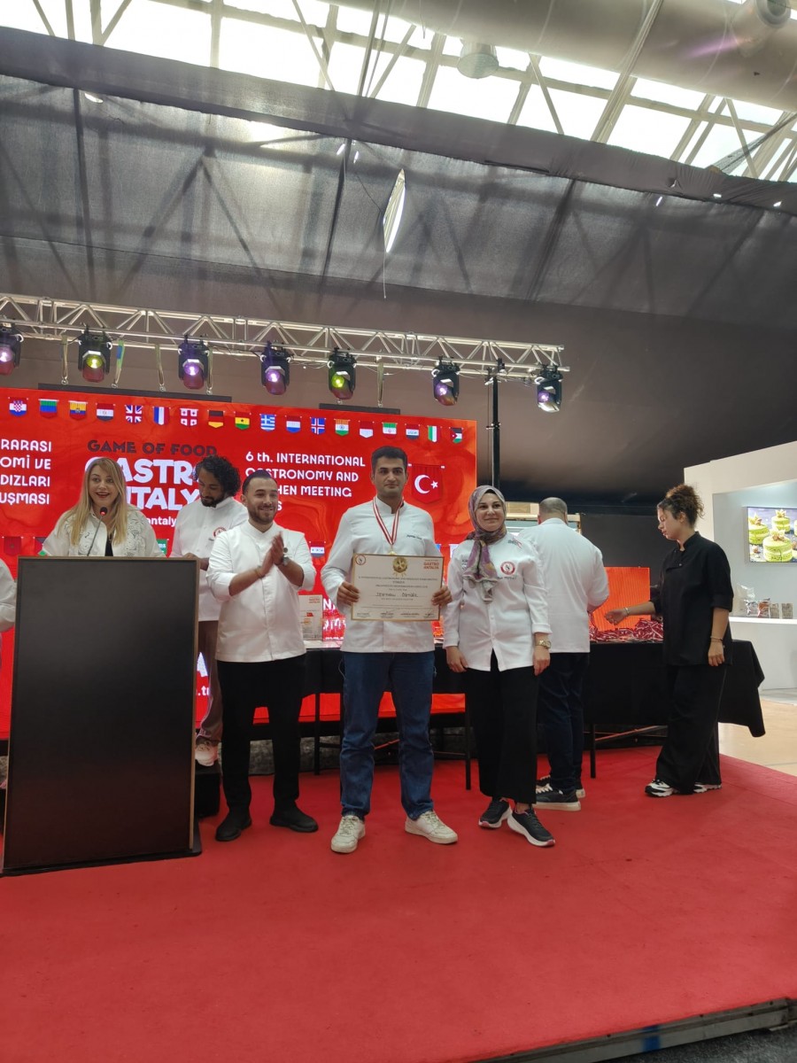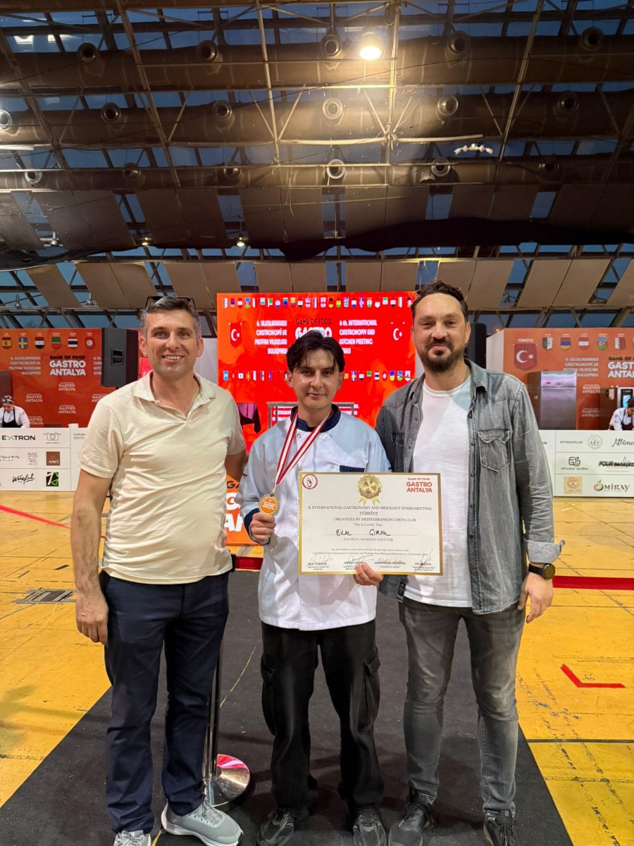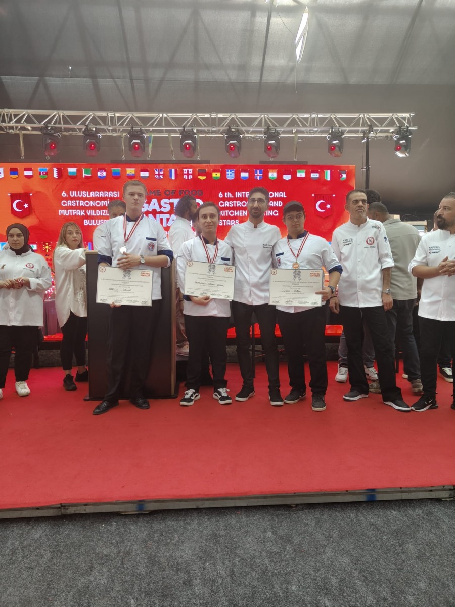 Gastronomi ve Mutfak Sanatları Bölümü ekibi; Bölüm Başkanı Öğr. Gör. Özkan Yazar ile bölüm akademisyenlerinden Arş. Gör. Necati Karakaş eşliğinde 21-23 Kasım 2025 tarihlerinde Antalya Cam Piramit Kongre Merkezi’nde gerçekleşen yarışmalara katılım sağladı. Üç bireysel ve bir ekip kategorisi olmak üzere toplam dört kategoride yarışan öğrencilerimiz, tüm kategorilerde altın ve gümüş madalya kazanarak önemli bir başarıya imza attı.