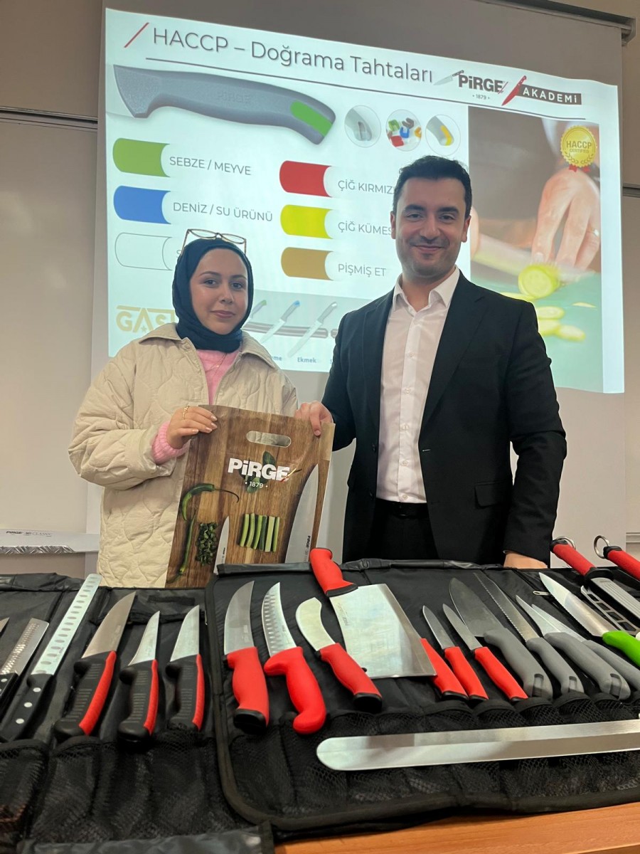 Eğitim süresince öğrencilerden gelen sorular yanıtlanırken, programın sonunda gerçekleştirilen soru–cevap bölümünde doğru yanıt veren üç öğrenciye PİRGE Akademi tarafından şef bıçağı hediye edildi.